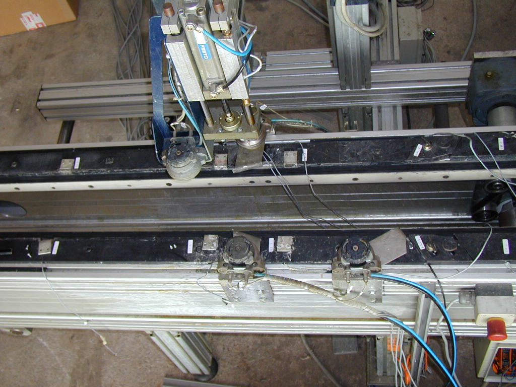 entsprechendem Interface angesteuert. Neben den X-Y- Achsen gibt es noch den Förderbandantrieb mit variabler Geschwindigkeit sowie einen Antrieb zur Einstellung der Arbeitsbreite des Förderbands, die ebenfalls